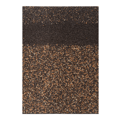 В основе лежит битум, улучшенный СБС-модификатором; сверху нанесена базальтовая крошка.