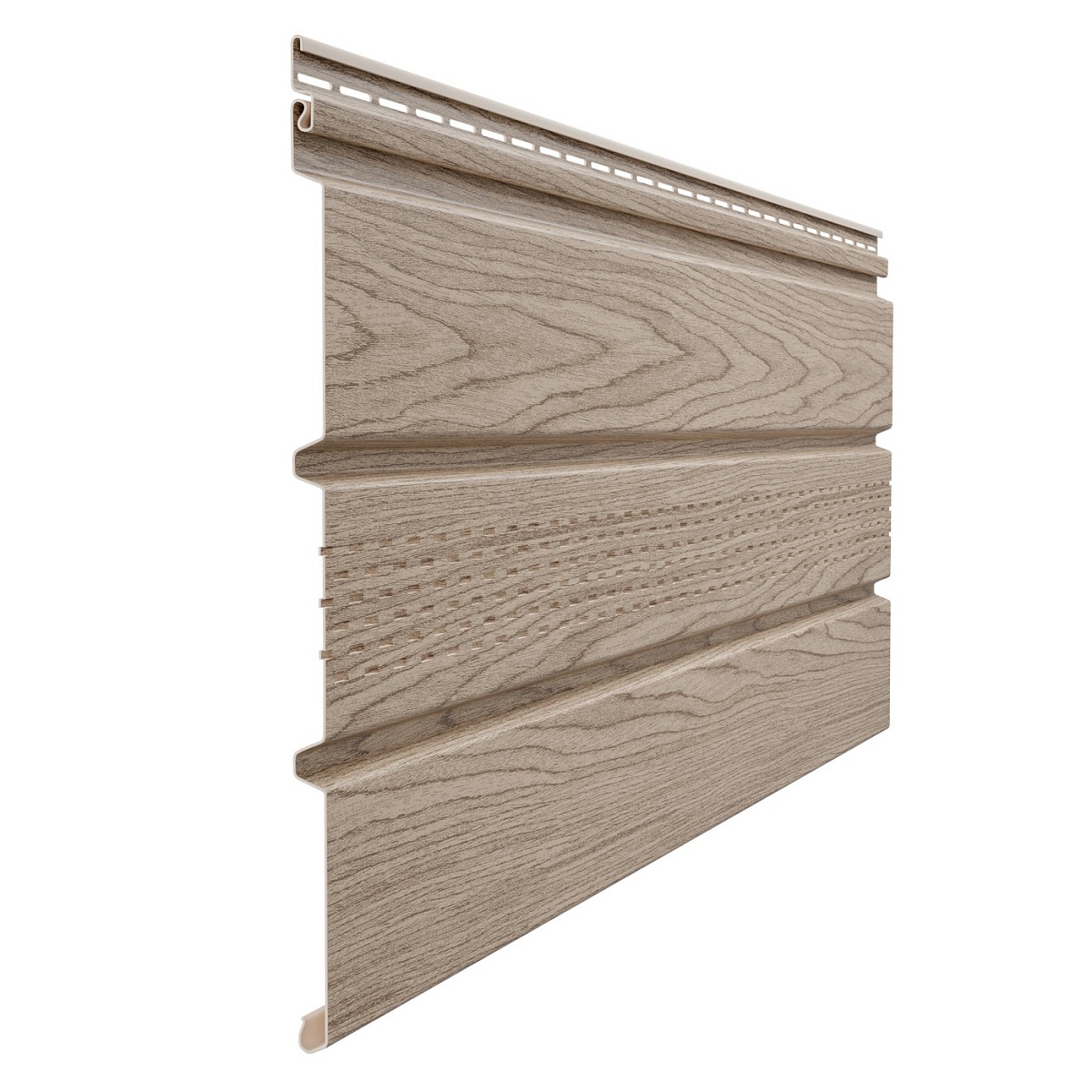Софит Docke с центральной перфорацией может быть использован для оформления выносных карнизов, при отделке летних кухонь, открытых террас, веранд и прочих конструкций, нуждающихся в постоянном притоке воздуха и вентилировании. Как правило, цвет софита подбирается в тон кровле для придания конструкции гармоничного внешнего вида.