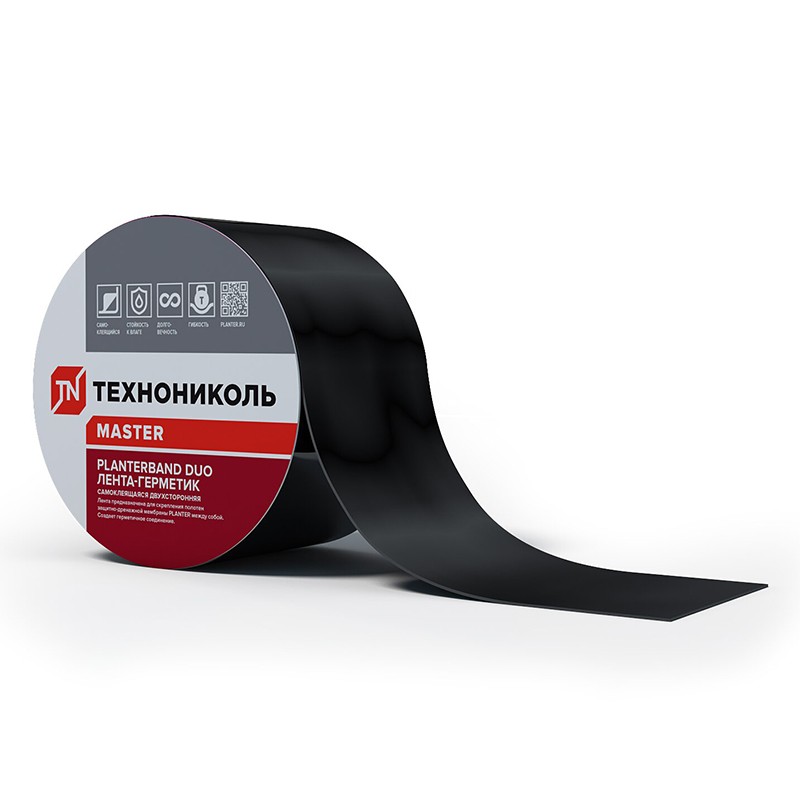 PLANTERBAND DUO — самоклеящаяся герметизирующая и гидроизолирующая битумно-полимерная лента получающую путем одностороннего нанесения на антиадгезионную пленку самоклеящегося битумно-полимерного вяжущего, состоящего из битума, полимерного модификатора и специальных адгезионных добавок. В качестве защитного слоя используют полимерную пленку.