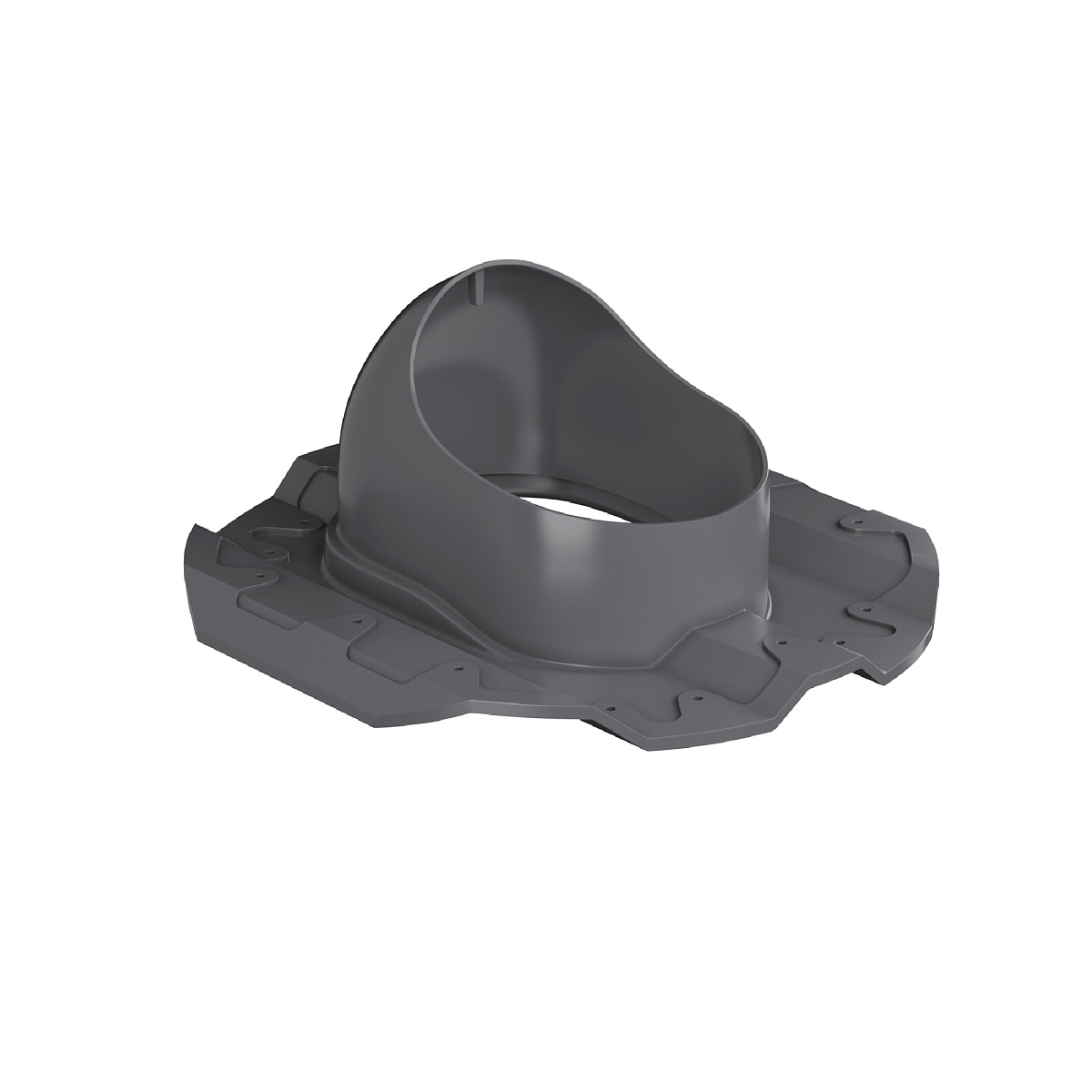 Элемент применяется в качестве основания вентиляционных и канализационных выходов при их монтаже. Используется для монтажа на профнастил МП-20, уже на готовую кровлю. В комплекте элемента идет специальный крепеж.