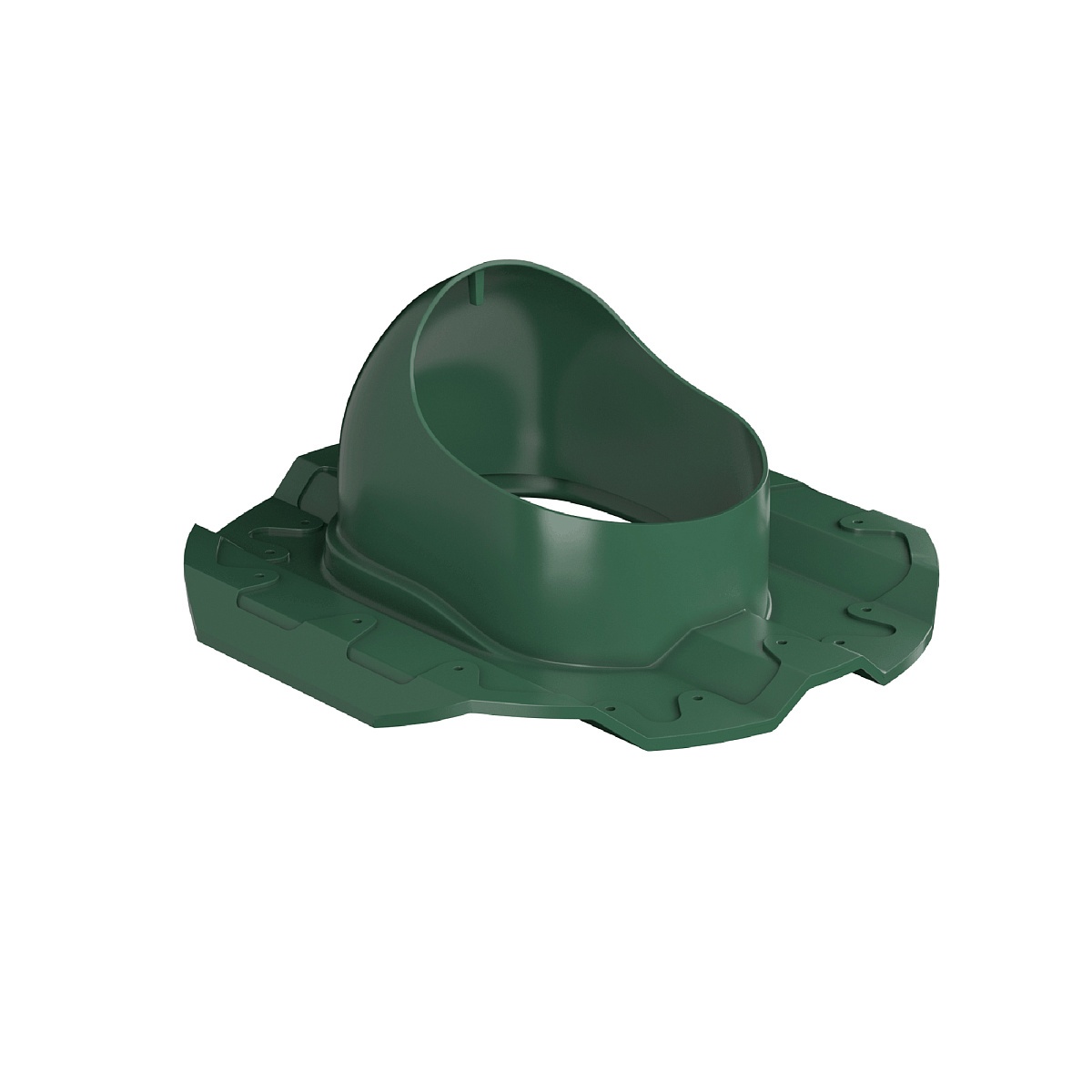 Элемент применяется в качестве основания вентиляционных и канализационных выходов при их монтаже. Используется для монтажа на профнастил МП-20, уже на готовую кровлю. В комплекте элемента идет специальный крепеж.