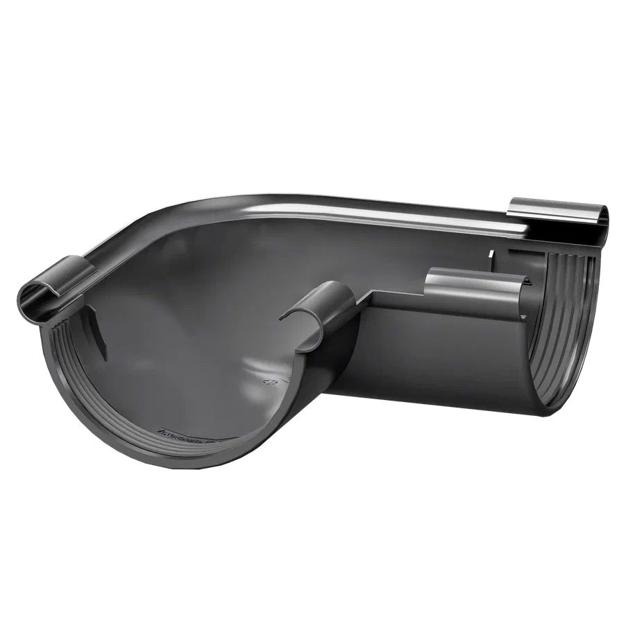 Для корректировки и изменения направления схода воды по водосточным желобам. Для желоба диаметром 142 мм