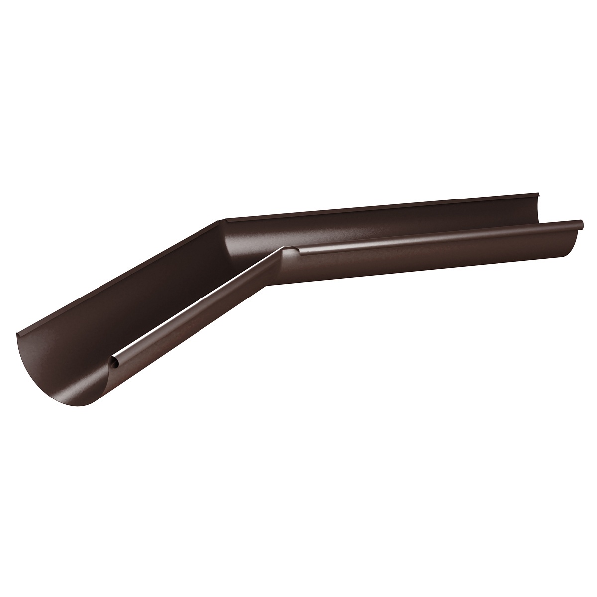 Угол желоба наружный - элемент водосточной системы, который устанавливается на внешних углах кровли и предназначен для изменения направления движения воды. Угол желоба и желоб соединяются между собой под углом 135° через соединитель. Элемент производится из высококачественной оцинкованной стали с двусторонним полимерным покрытием. Материал не склонен к коррозии, выдерживает высокий уровень нагрузок и устойчив к негативному воздействию окружающей среды. Угол желоба наружный 135° применяется в коттеджном и малоэтажном строительстве.