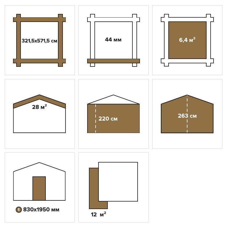 Размер мини бруса: 44 мм
