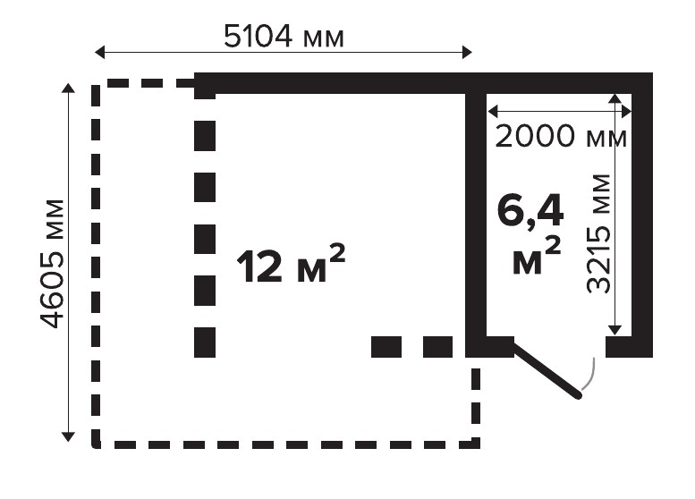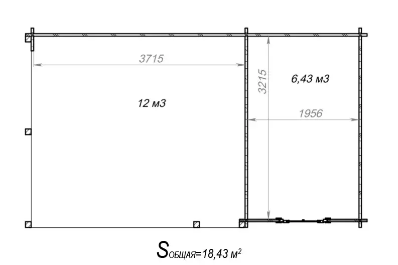 Площадь хозблока: 6,43 м2