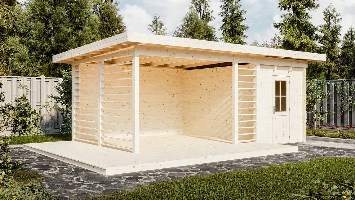 Современная прямоугольная форма позволяет наслаждаться окружающей природой без ограничений. Стены с проветриванием создают комфортную атмосферу внутри.