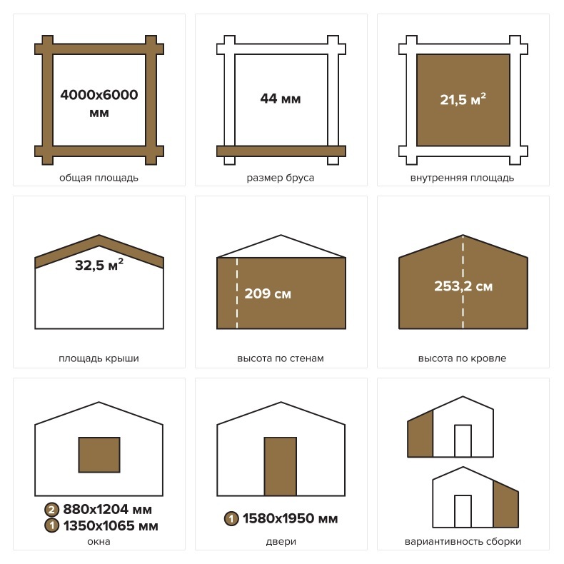 Размер мини бруса: 44 мм